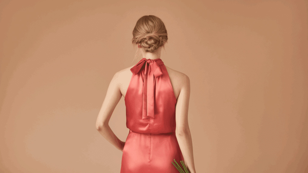 Bias-cut dresses are made by cutting fabric at an angle, allowing it to fall smoothly over the body. This method creates a natural drape that softens the shoulders and moves with ease.